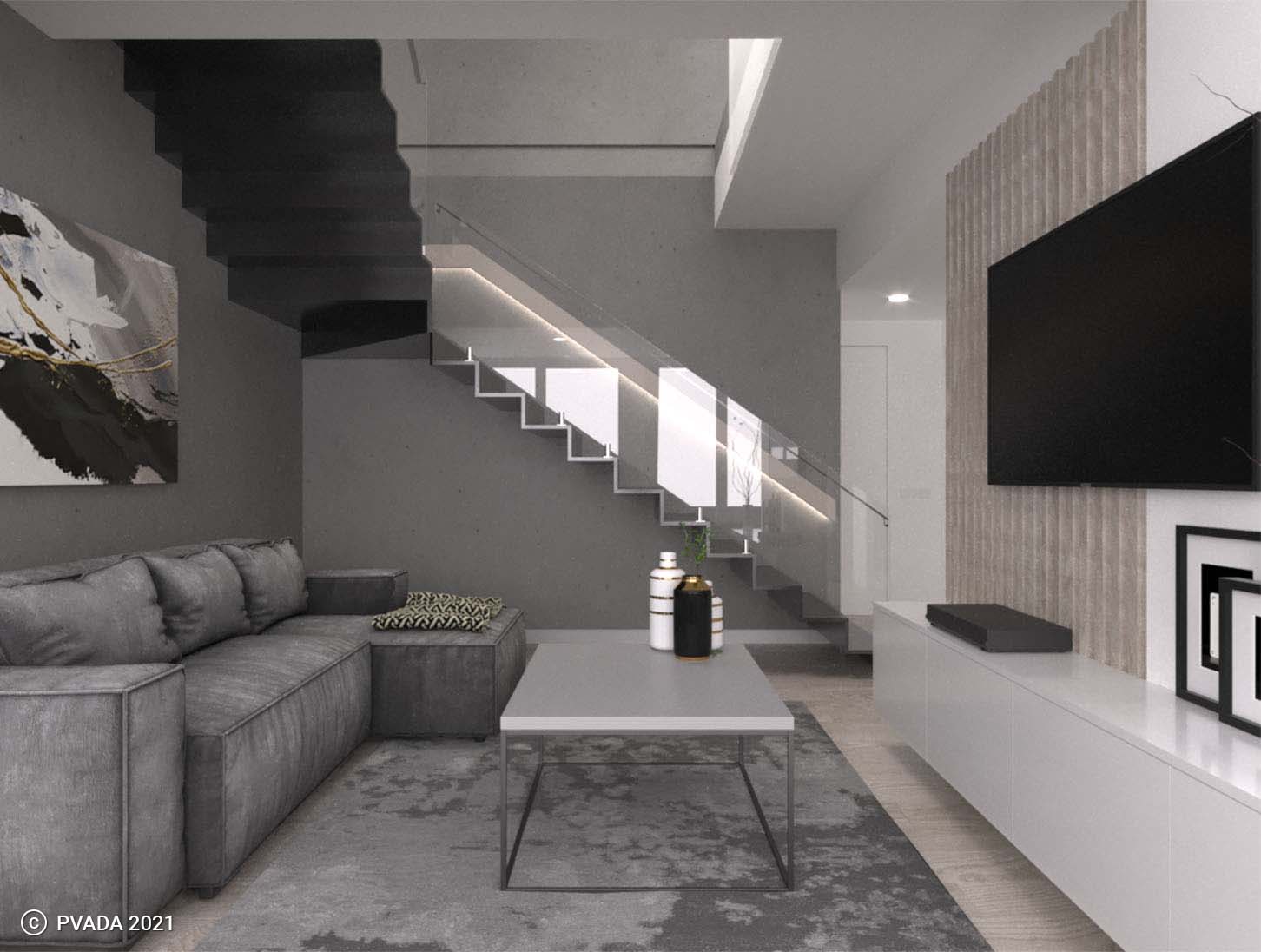 Starting with the first floor, consisting of an open-plan living room, dining area, and kitchen. The space was designed with a modern and minimalist aesthetic, using a neutral color palette with pops of warm, earthy tones to create a cozy atmosphere. To maximize space, the kitchen was designed with custom-built cabinetry and shelving, providing ample storage while also maintaining a sleek and streamlined appearance.
