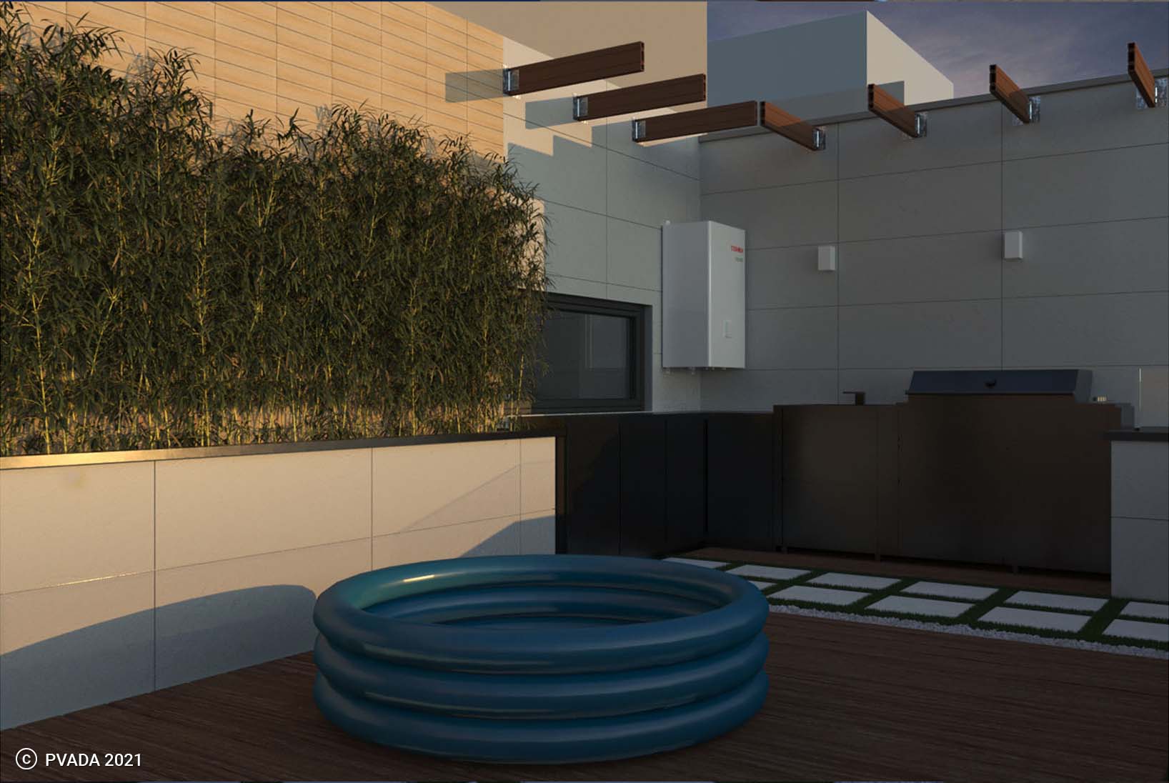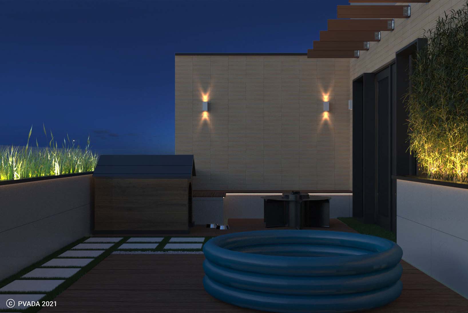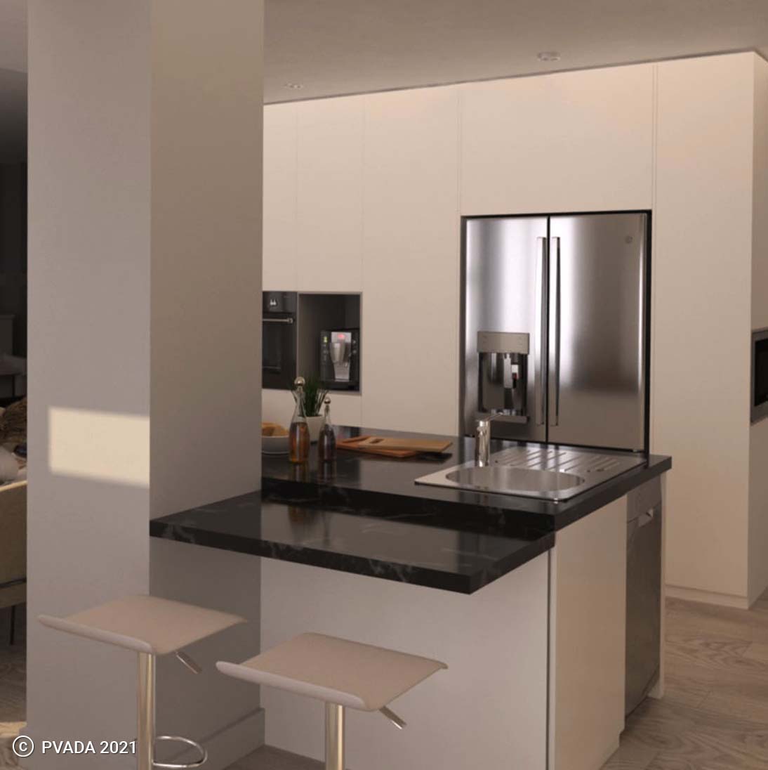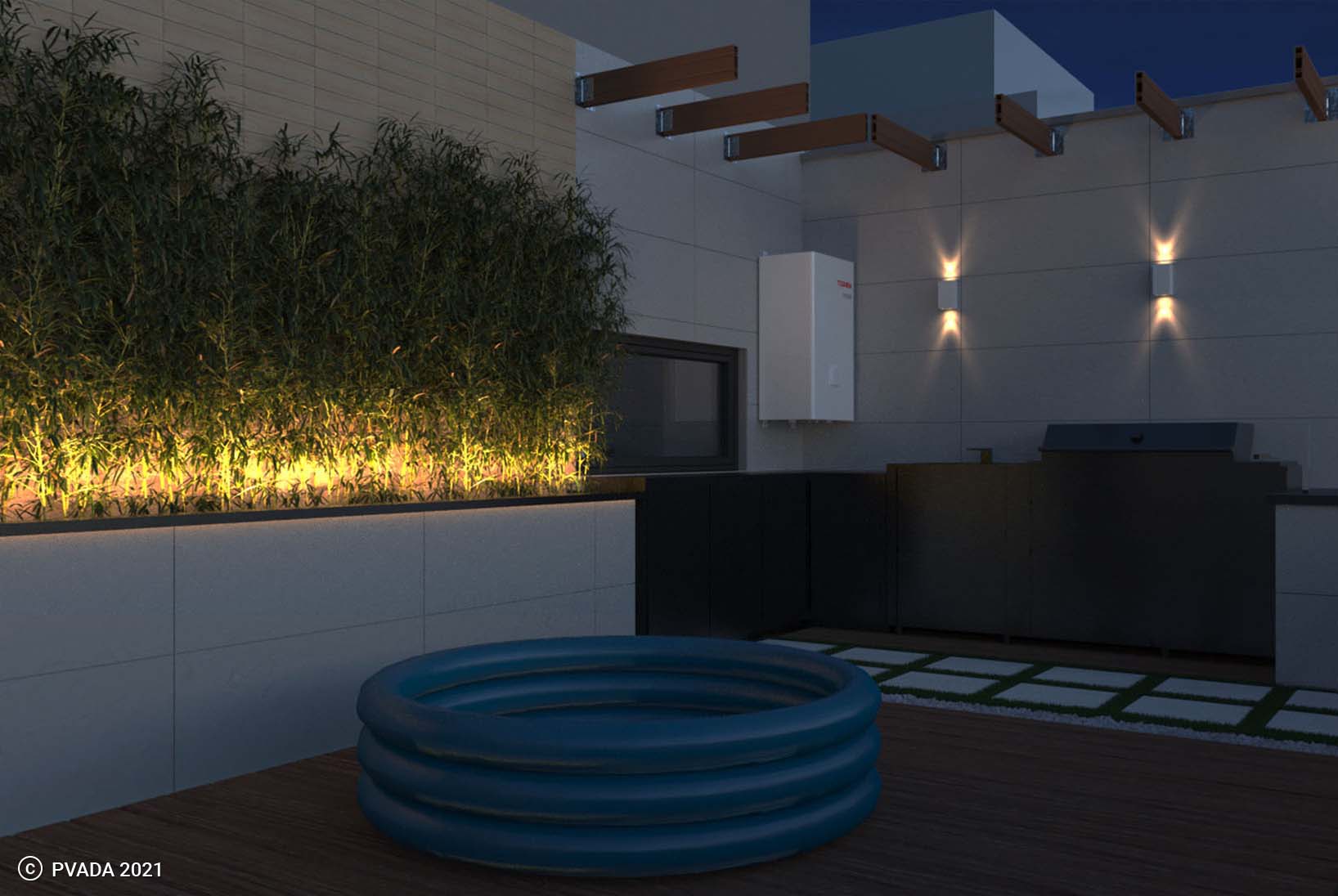 Finally, the terrace was designed as an extension of the apartment’s living space, with a comfortable seating area, a dining table, cabinets, and a barbecue grill. The terrace was decorated with lush greenery and potted plants to create a calming and serene atmosphere, while also providing privacy from neighboring buildings.