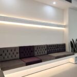 The waiting area of the clinic should feature comfortable seating, soft lighting, and soothing colors. The walls can be painted in calming shades of blue or green, with artwork or photographs that promote relaxation and positive emotions. The space should also include a reception desk with a friendly and welcoming receptionist, who can offer patients reassurance and assistance as needed.