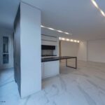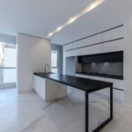 Embracing a minimalistic approach, the interior spaces exude an aura of simplicity and sophistication. White materials dominate the palette, creating a canvas that maximizes the impact of natural light. Despite navigating through stringent municipal regulations, an open kitchen and an open floor plan were seamlessly integrated, ensuring a spacious and inviting ambiance.