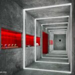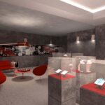 Designing a space to display jewelry has its own set of needs and requirements. A space that offers a sense of peace and luxury. In this design, we have thrown a red carpet under the feet of the customers who are the most important guests, and we also lit their way with custom-designed lighting to reach the main hall of the store, which is decorated with luxurious decor. The splendor of the space in this part is enhanced by the combination of red and neutral colors, as well as the modern furniture, reducing the heaviness of the classic spaces.